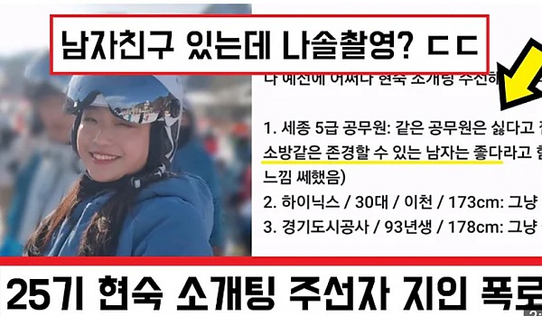 남자친구 있는데도 나는솔로 나갔다는 25기 현숙 소개팅 주선자의 폭로