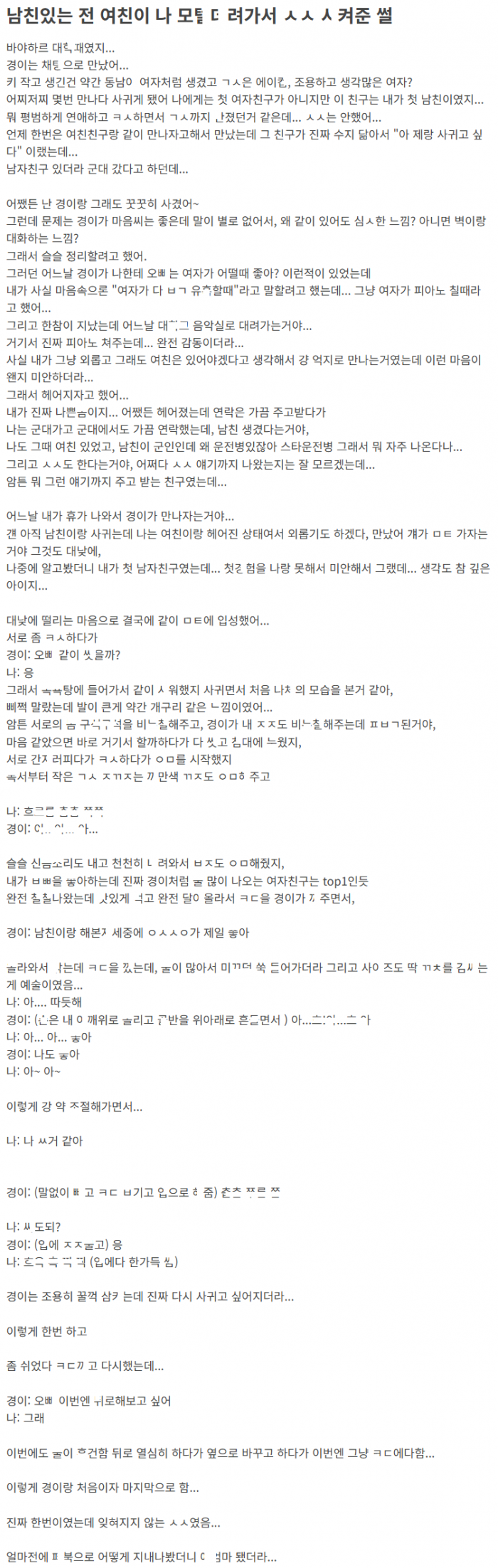 전여친과 사귈때 ㅅㅅ못해봐서 헤어지고나서 ㅈㅈ 물려본 이야기