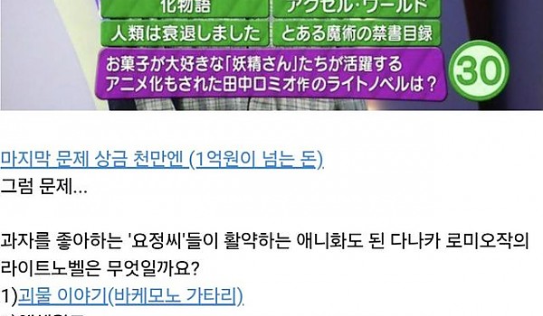 日 NHK 퀴즈프로그램 1억원 걸린 상금 문제