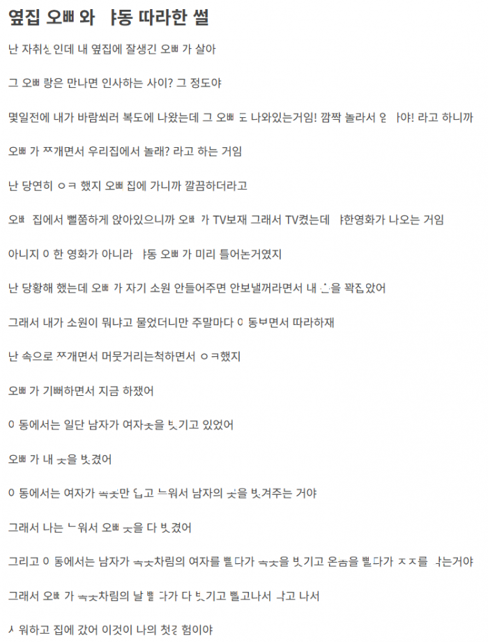 옆집 오ㅃ와 ㅇ동 따라했다가 첫경ㅎ 뺏긴 이야기