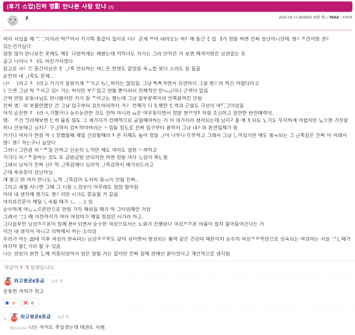 진짜 ㅂㅈ 명ㄱ 만나본 사람 있냐