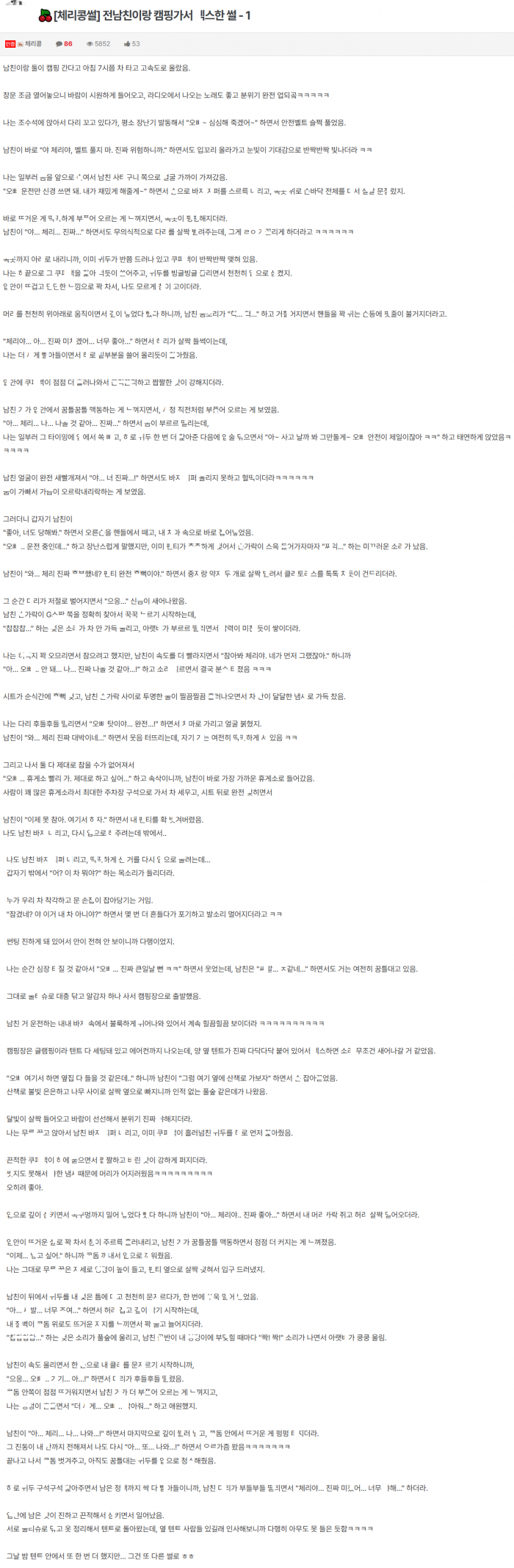 전남친이랑 캠핑 가서 흠ㅃ ㅈ어서 ㄱ같이 ㅂ힌 썰(1편)