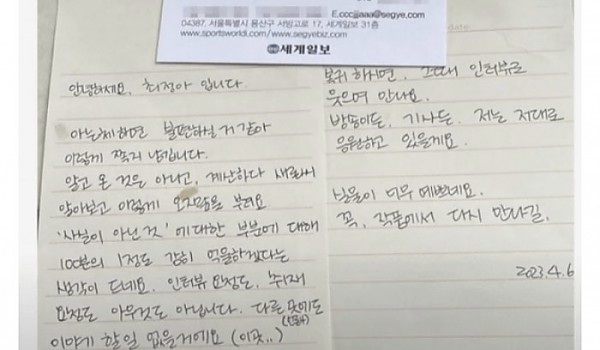 김새론에게 쪽지 준 기자가 쓴 글