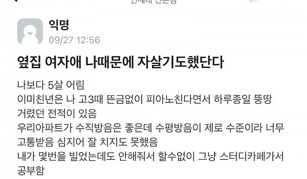 옆집 여자애가 나때문에 ㅈ살기도 했단다