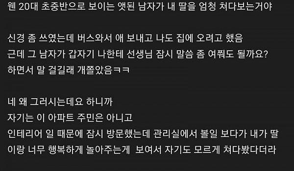 딸래미 유치원버스 기다리는데 웬 남자가 뚫어져라 봄