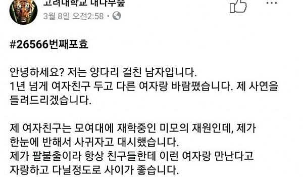 양다리 고백하는 고대생 썰
