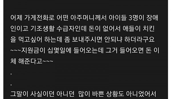 공짜로 치킨 주고 황당한 일을 겪음
