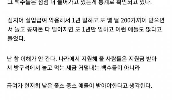 백수 지원금 중단해야 하는 이유