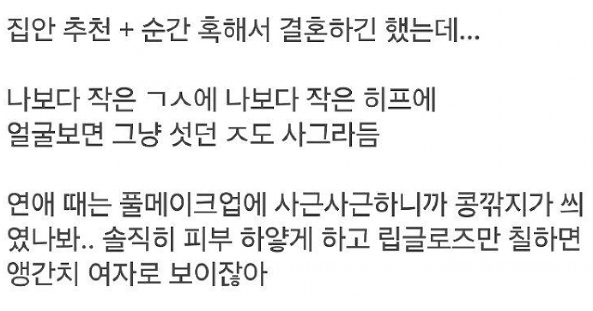 피지컬있는 못생긴 남자가 못생긴 여자와 결혼한 후기...