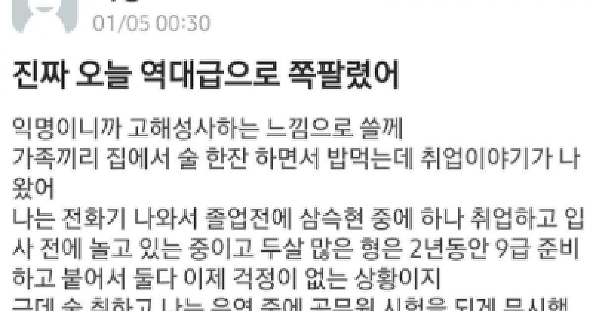 대기업 취업하고 9급 공무원인 형한테 말 실수한 동생.jpg