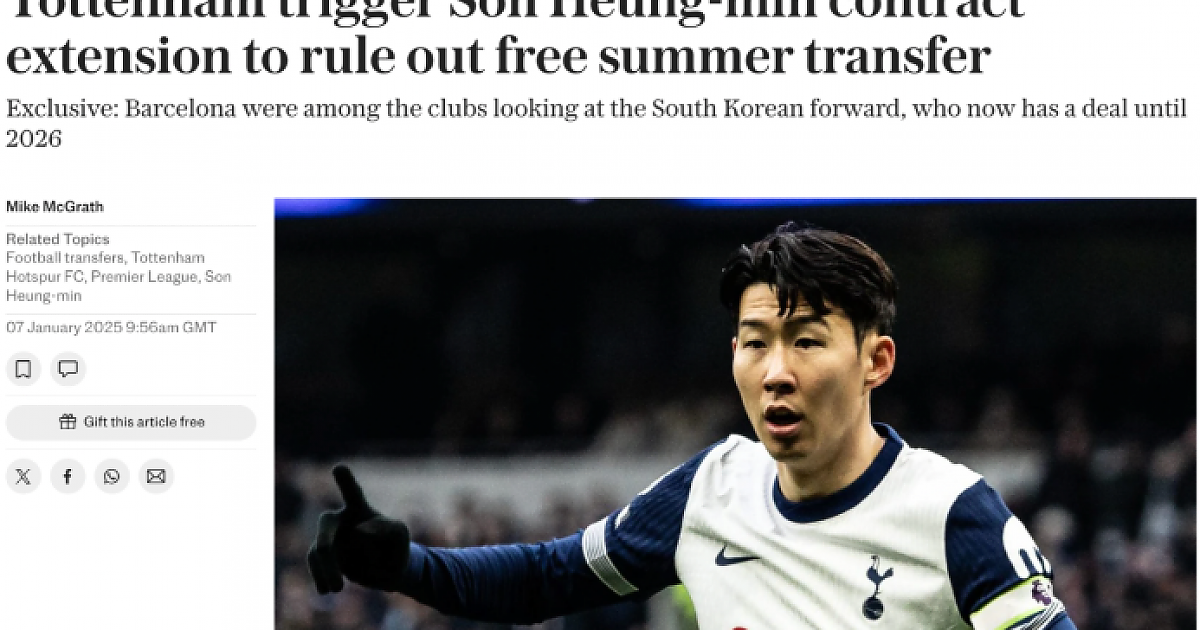 손흥민이 바르셀로나와 접촉시도가 있자 허겁지겁 1년 연장 옵션 발동한 토트넘.jpg