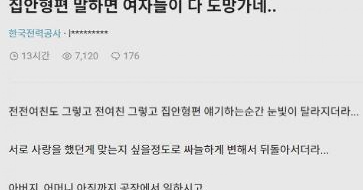 집안 형편 말하면 여자들이 다 도망간다는 한전직원.blind