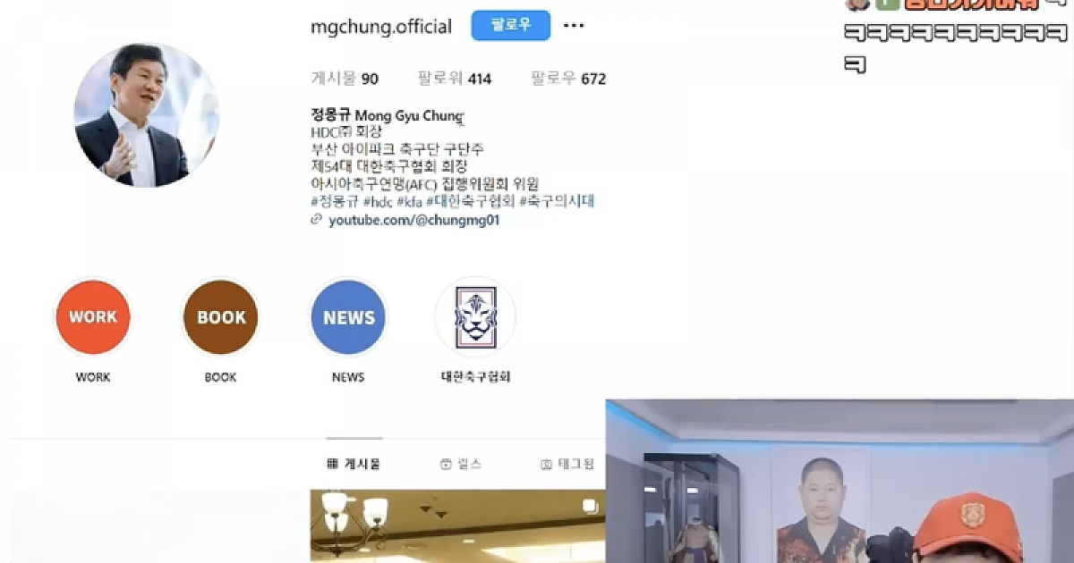 정몽규햄 감스트 인스타팔로우 ㄷㄷ