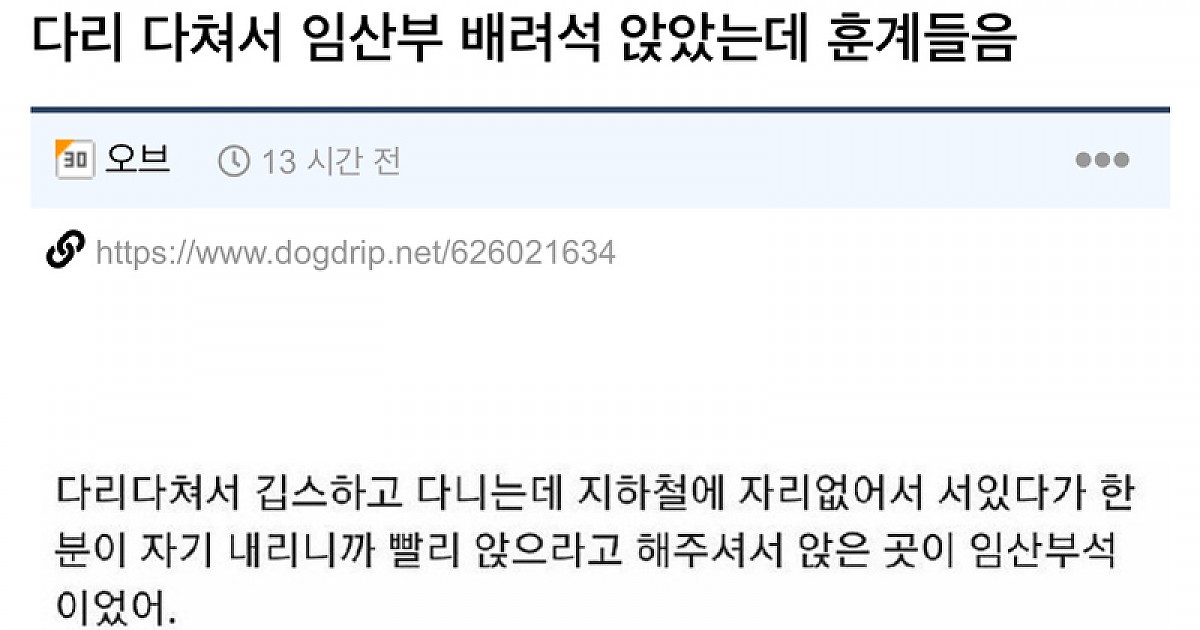 다리 다쳐서 임산부 배려석 앉았더니…