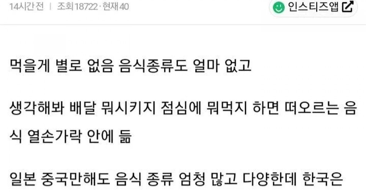 한국은 정말 식문화가 발달 안함