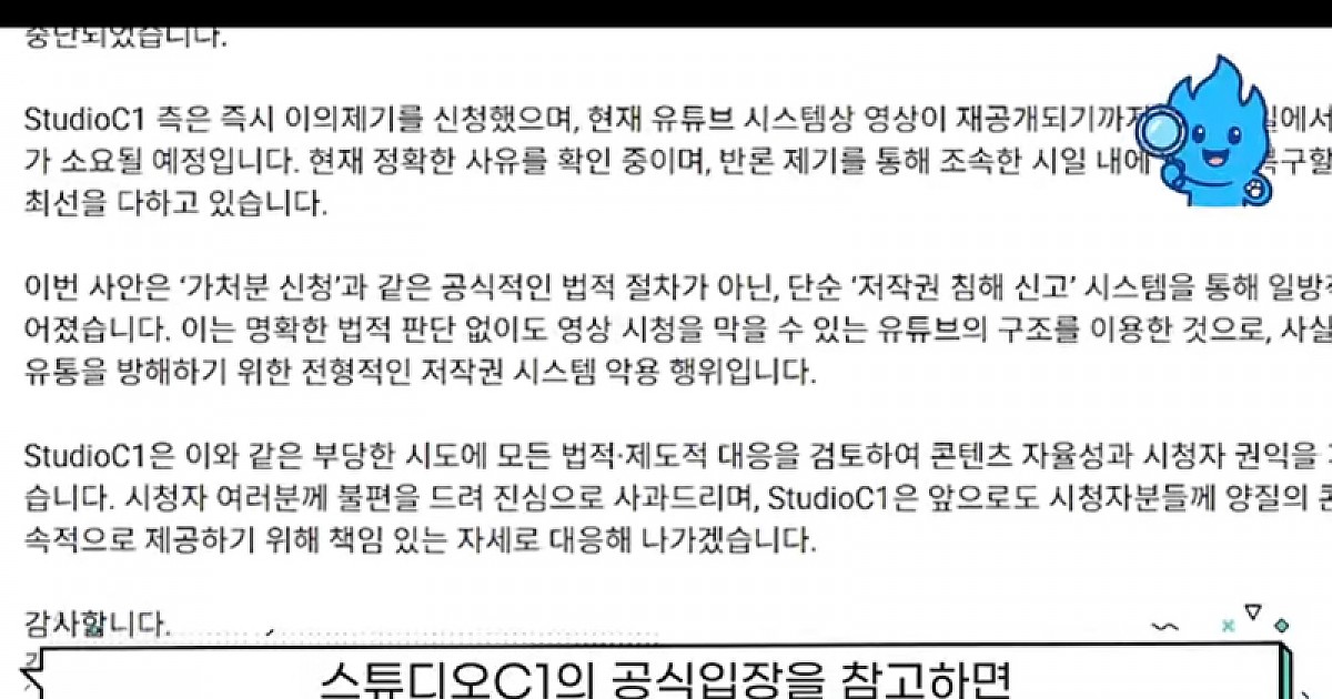 불꽃야구 신고로 인한 비공개처리, 이에 대한 스튜디오 C1의입장.mp4