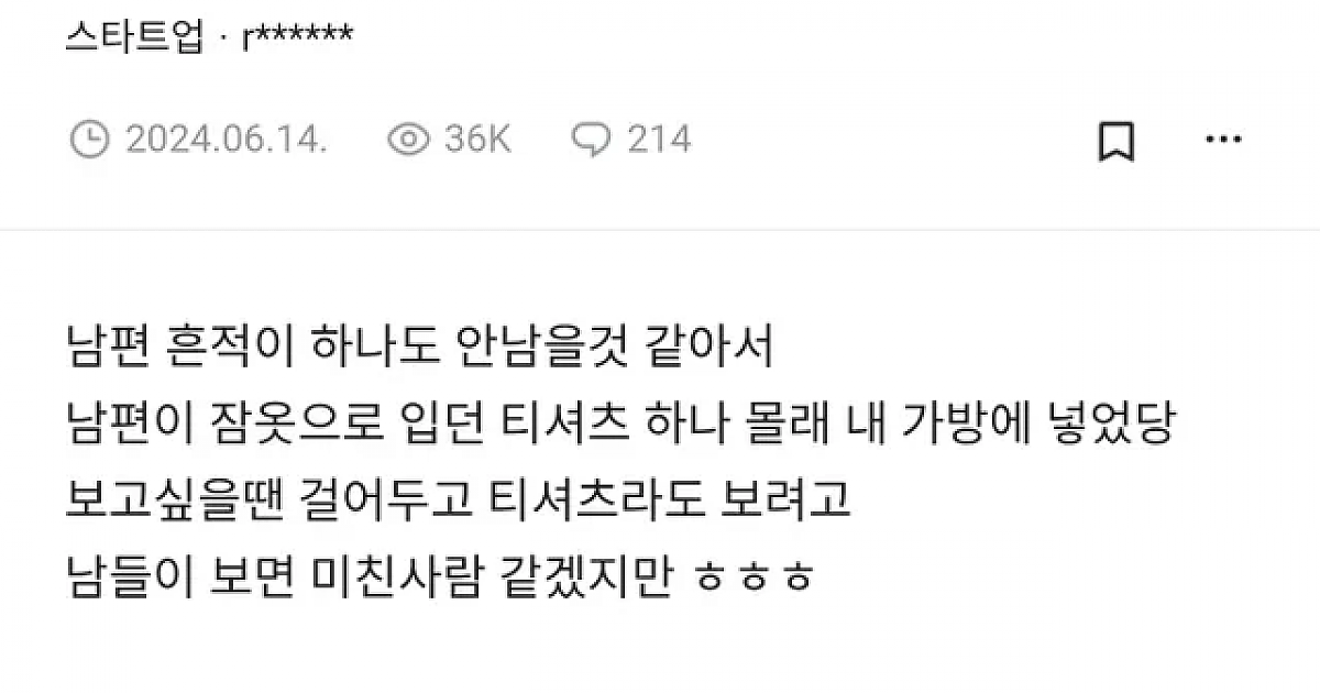 남편 잠옷 챙긴 블라인드 회원