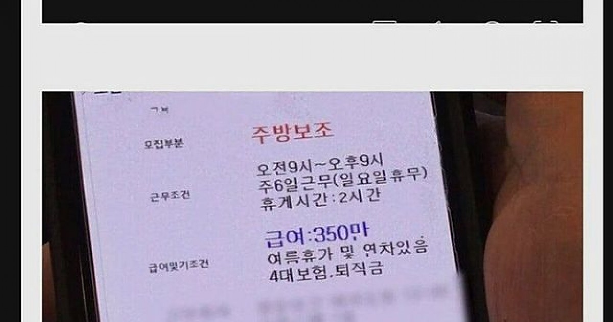 월 350에 숙식까지 제공하는데 사람이 없어요