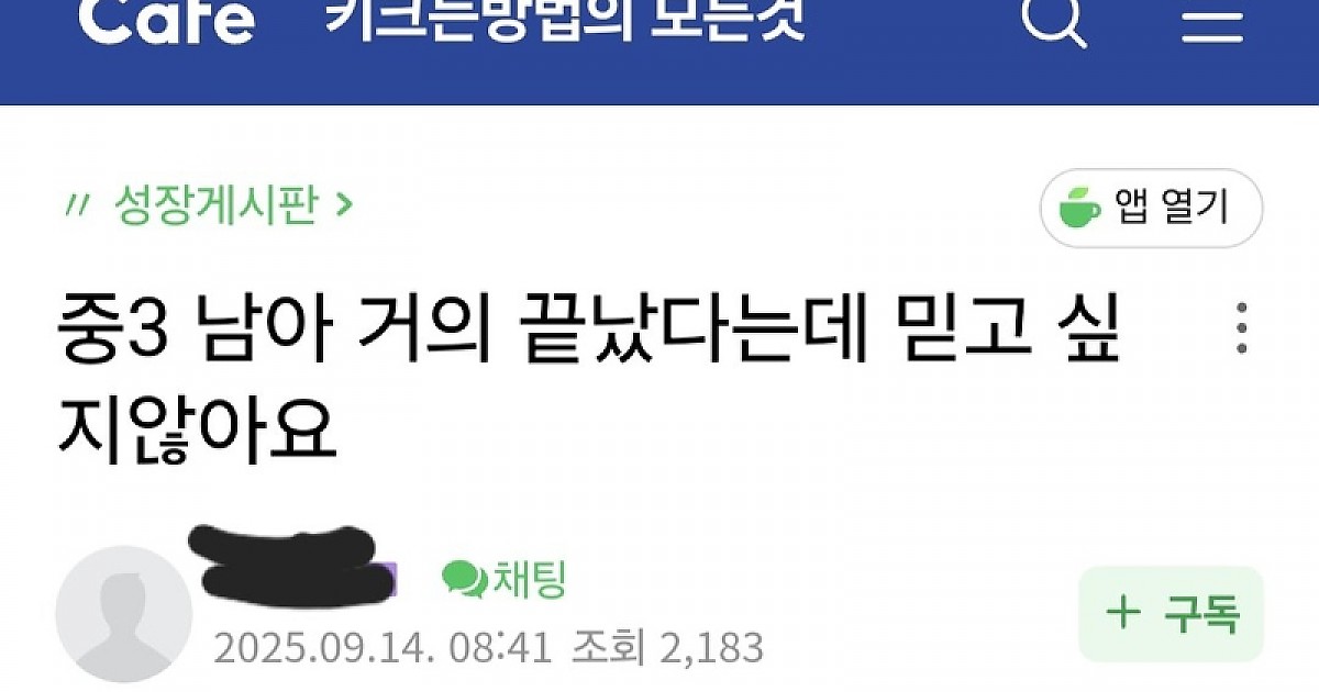 중3아들 키성장이 멈춰서 잠도 못잔다는 부모
