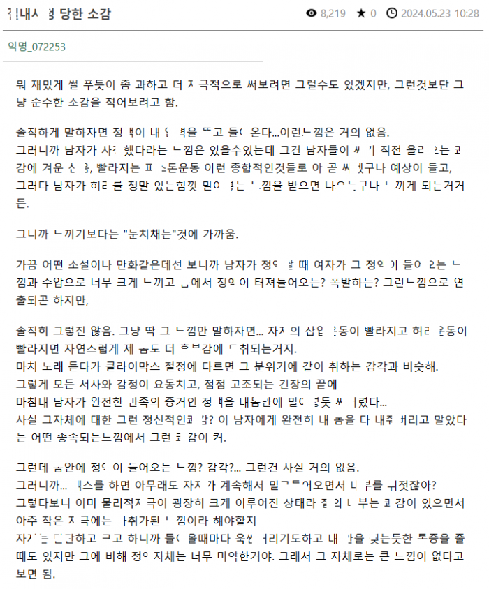 ㅈ내ㅅ정 ㄷ해본 여자의 소감