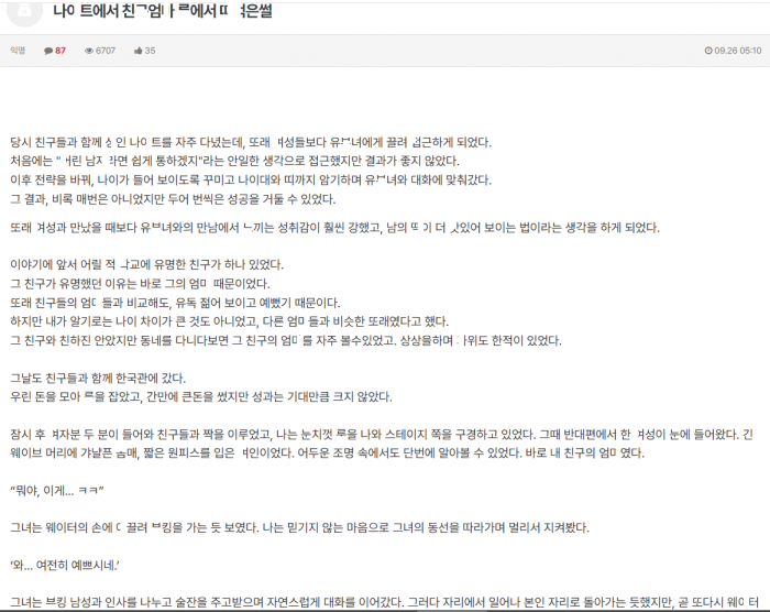 나ㅇ트에서 본 친구 엄ㅁ를 ㄹ에서 ㄸㅁ은 썰