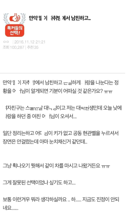 ㄸ이 자취ㅂ에서 남친이랑 ㅅㅅ하는걸 봤다면..