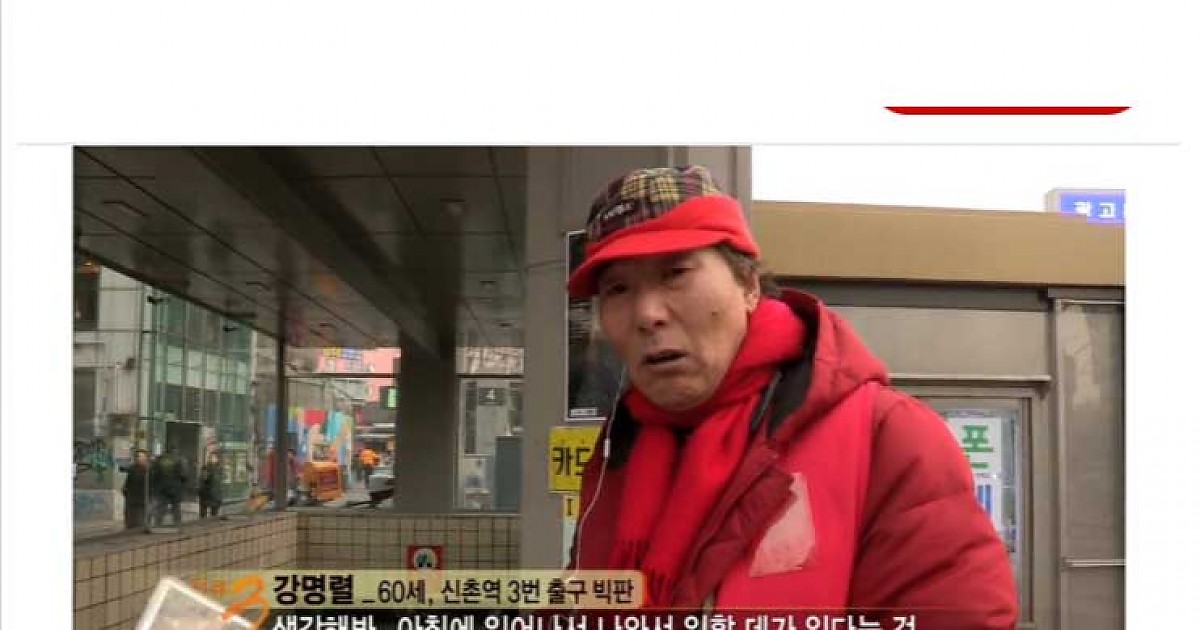 지하철역 앞에서 빨간 조끼입고 잡지 판매하는 사람들
