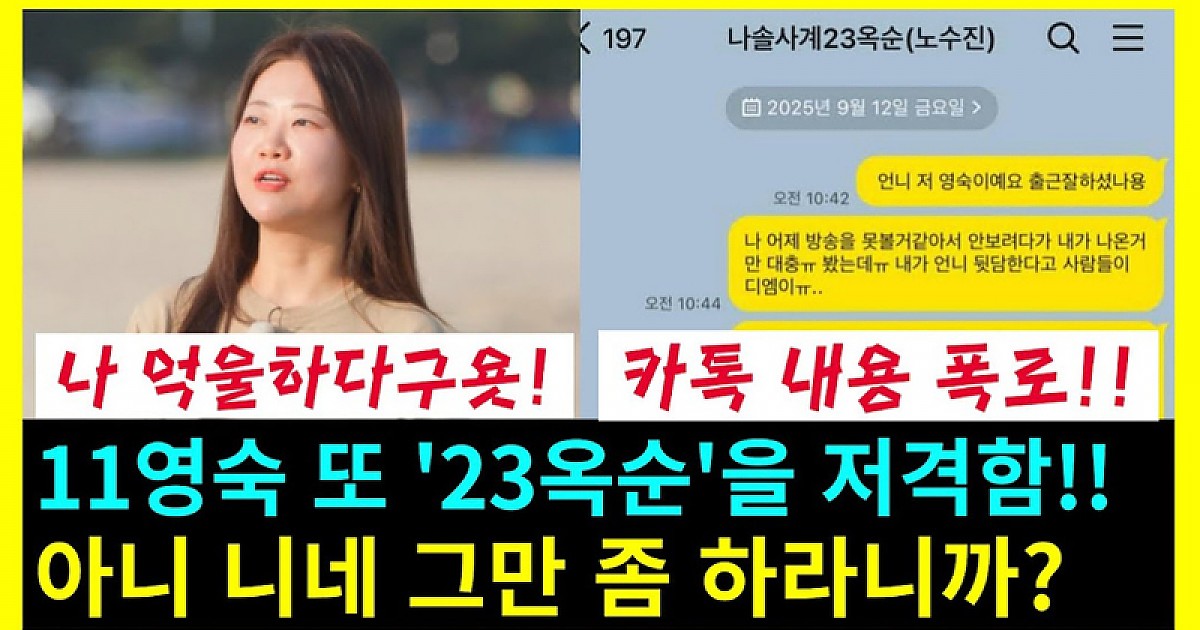 나솔사계 11영숙이 23옥순을 또 다시 저격한 이유