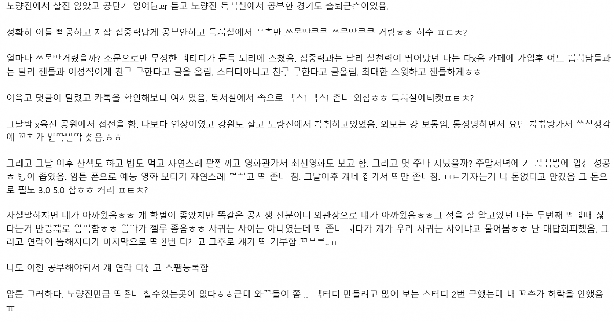 노량진에서 공ㅂ 친ㄱ 구ㅎ서 ㅈㄴ ㅅㅅ터디한 썰