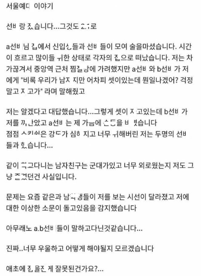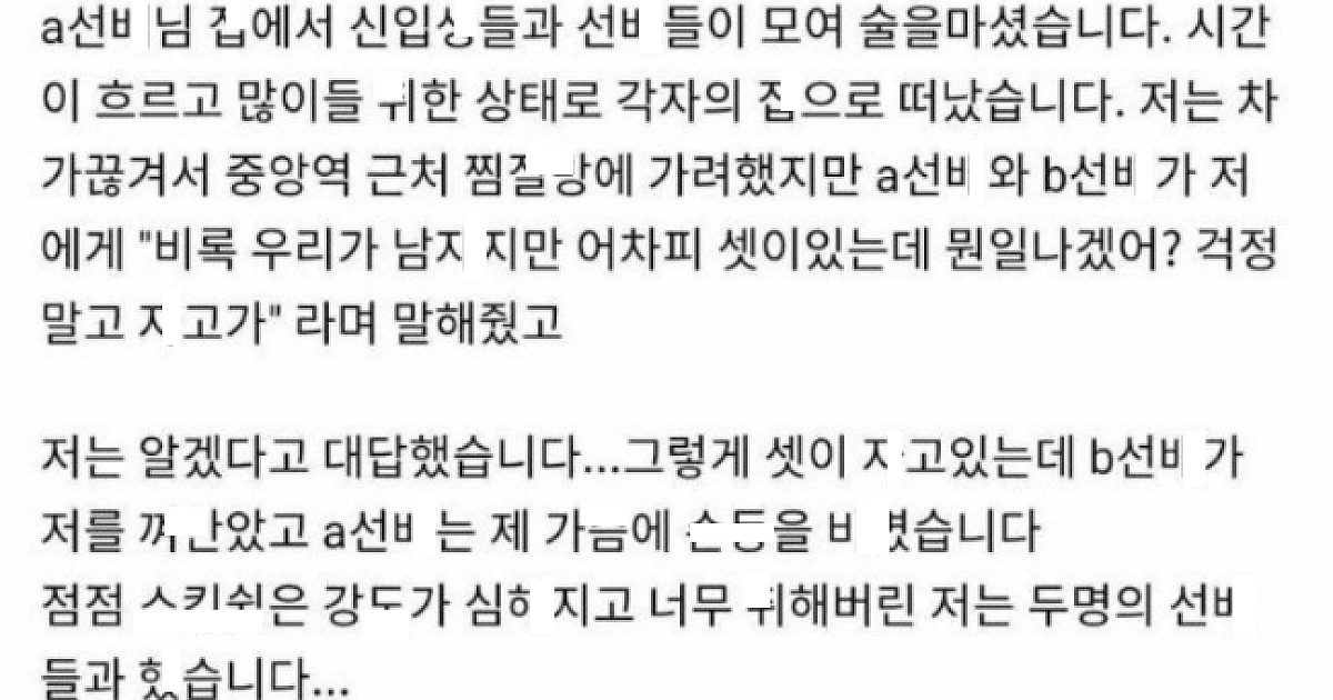 ㅅ김에 두 선ㅂ한테 쓰ㄹㅆ으로 ㄸㅁ힌 여ㄷ생