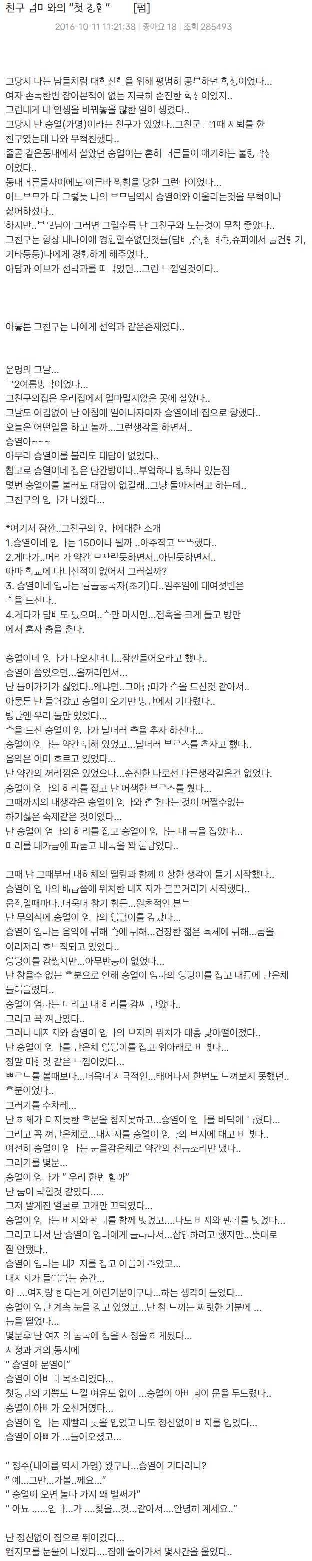 아ㄷ 뗀다고 칭구 엄ㅁ의 ㅂㅈ ㅌ한 썰