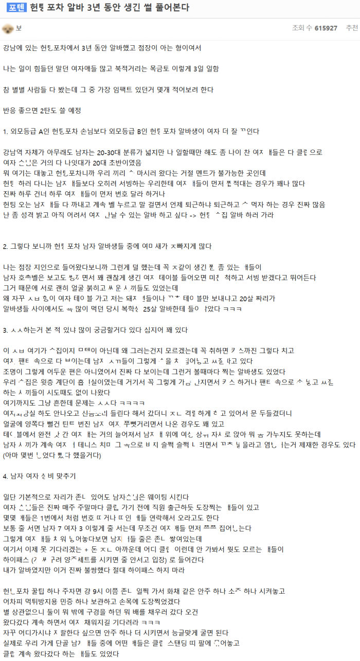 헌포에서 3년 동안 일하면서 생긴 썰 풀어본다