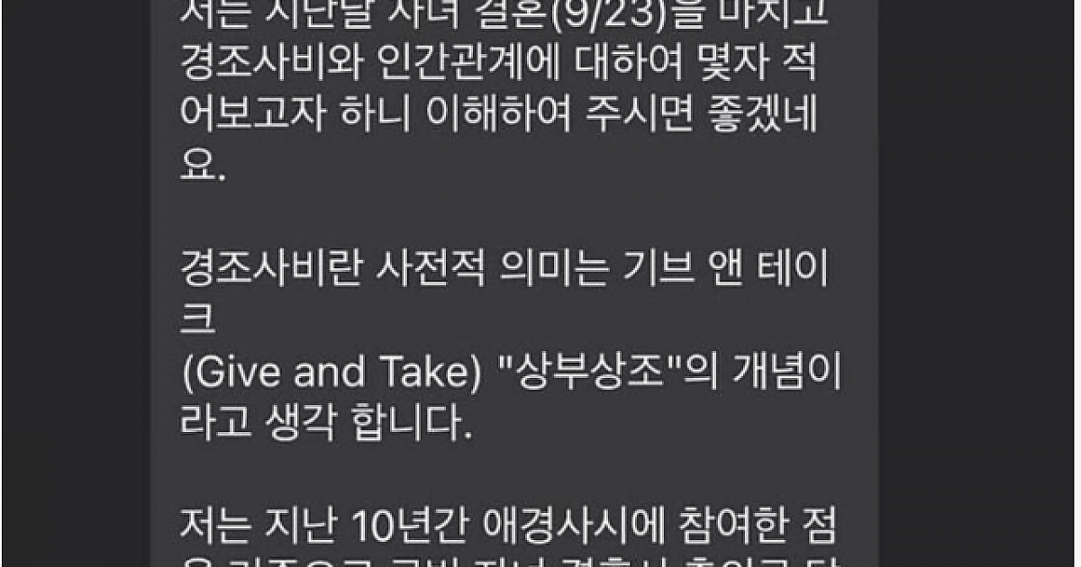 5년 전 퇴직한 사람이 이런 문자를 보냄