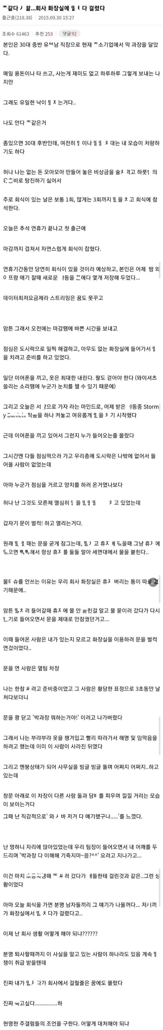 회사 화장실에서 딴짓 하다가 걸림