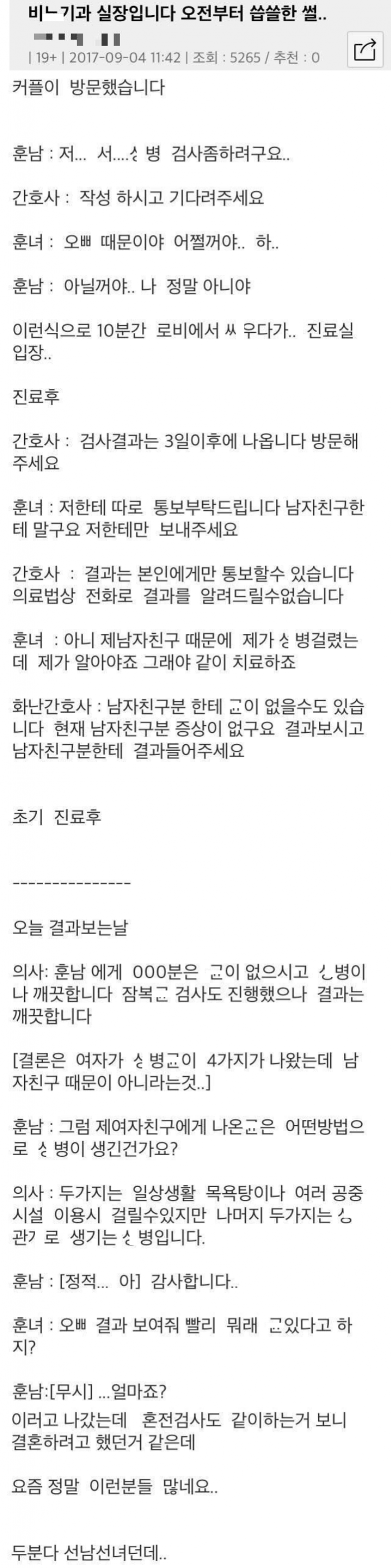 ㅅ병검사 하러 비ㄴ기과를 방문한 훈남 훈녀 커플