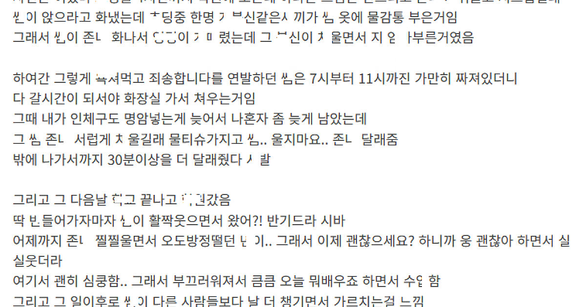 ㅇ린 미술ㅎㅇ 여선ㅅ님한테 ㅁ버 당한 이야기