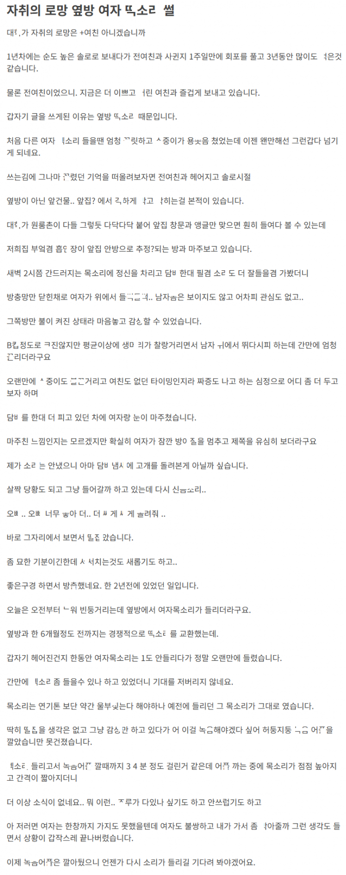 자취의 로망, 옆집 여ㅈ..r ㄸ소리 썰