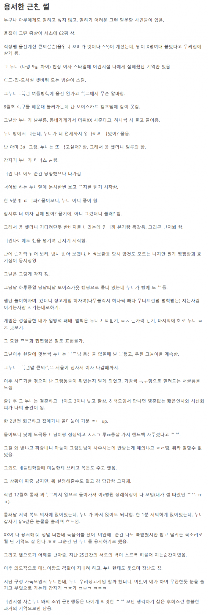 일방적인 사ㅊ누ㄴ와의 용서한 근ㅊ 썰