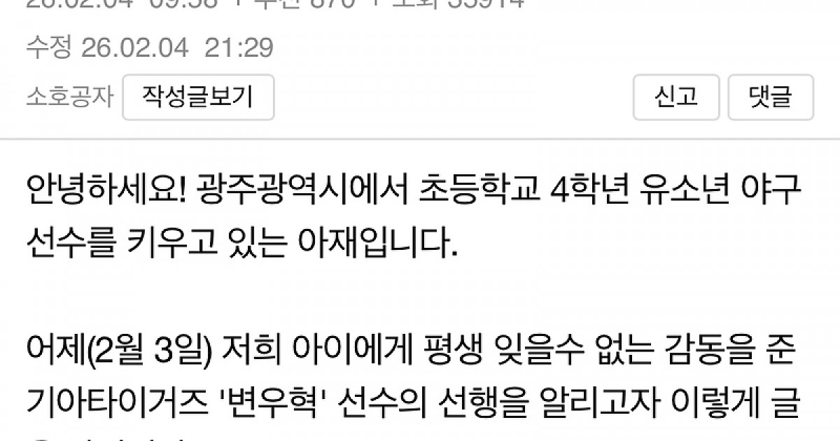 보배드림에서 기아타이거즈 변우혁 선수가 화제인 이유