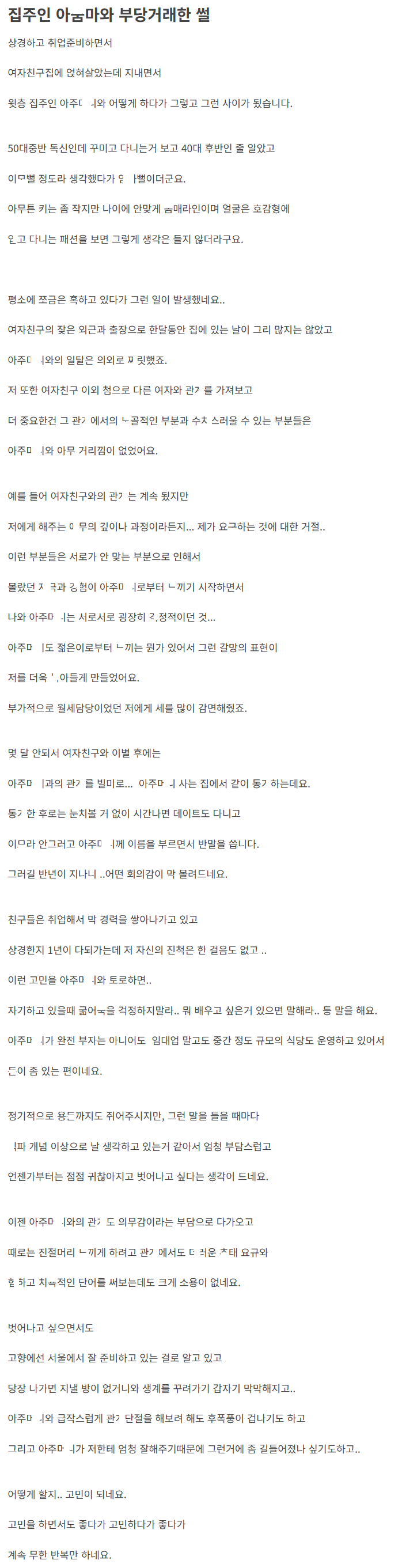 윗층 집주인 아ㅈ마와 ㅅㅍ로 지내며 부당거래한 남자 이야기