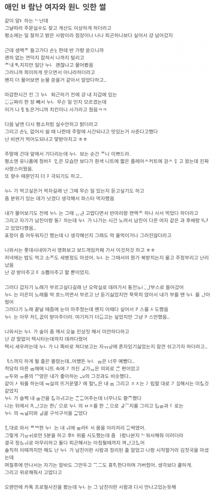 바람난 남친을 둔 알바 눈나 ㅅㅅ로 위로해준 썰