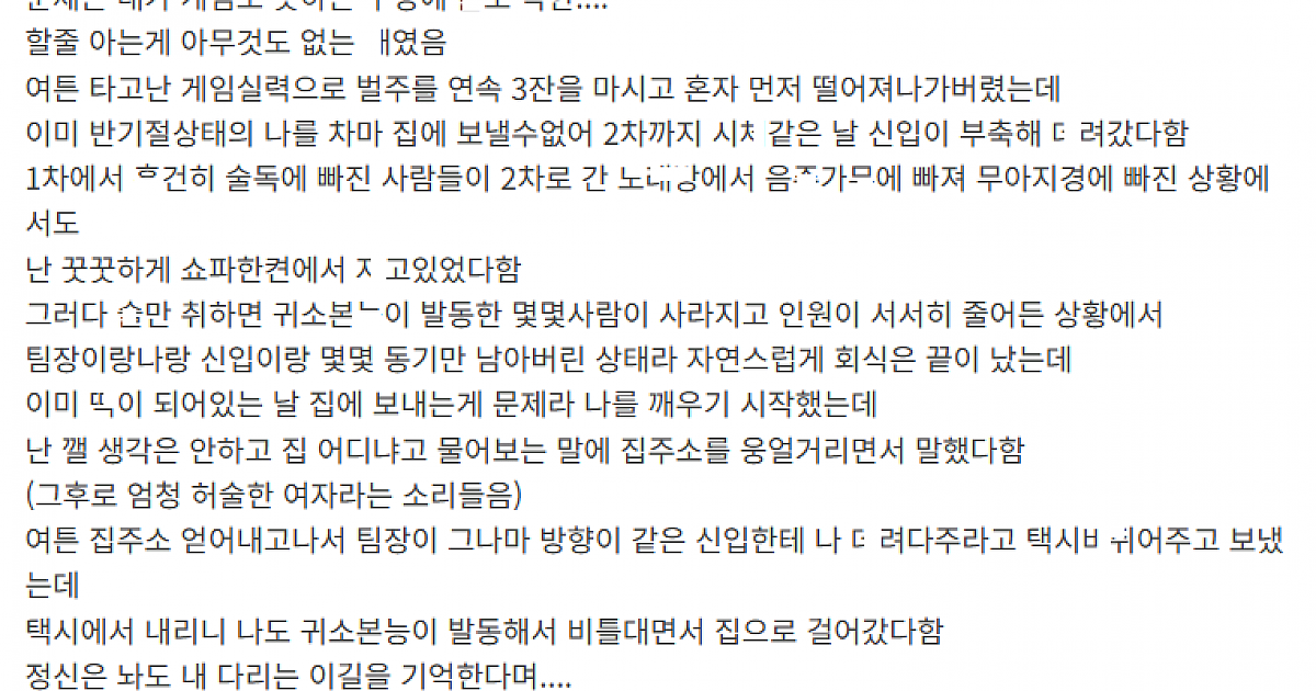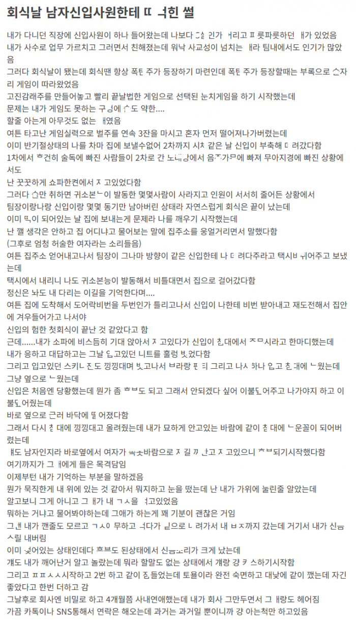 회식날 남신입사원한테 ㅂㅈ ㄸ려버린 이야기