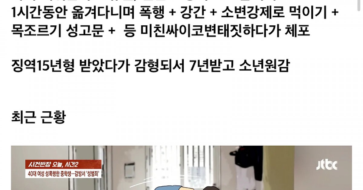 40대 여성에게 사이코패스짓하고 감옥갔던 중학생 최근 근황