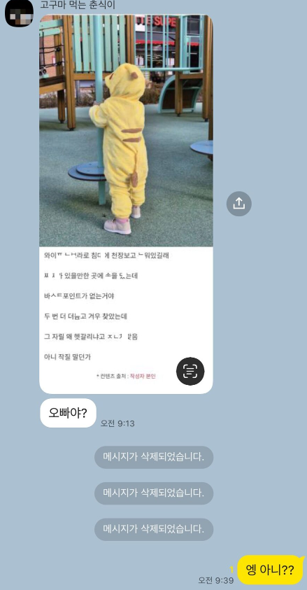 와잎 ㄱㅅ ㅁ지려다 실수함..