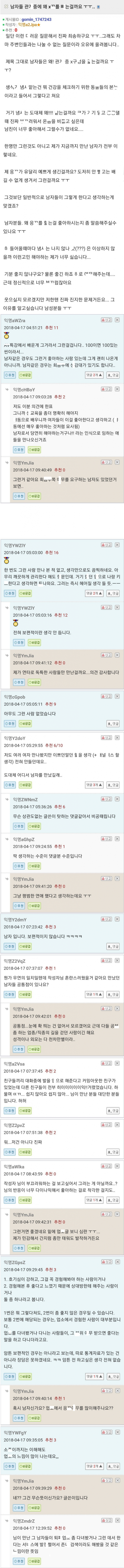 남친들이 자기 응ㄲ를 가만 안 냅둔다는 츠자