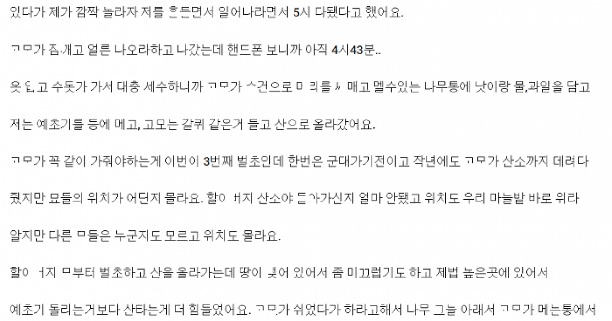 벌초하러 시골 갔다가 거ㄷ한 ㄱㅅ을 가진 고ㅁ와 생긴 일